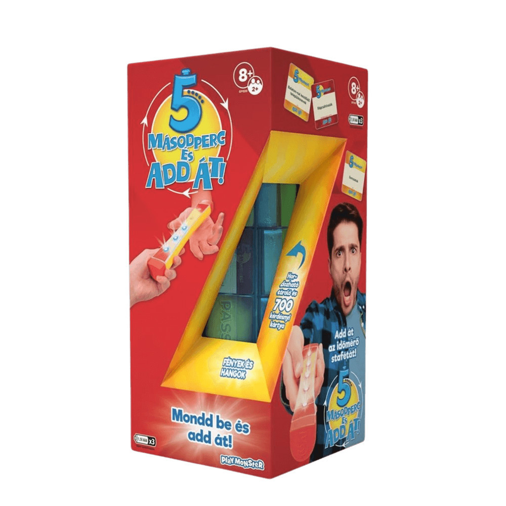 Próbáld ki a 5 másodperc és add át társasjátékot, ahol a gyorsaság, a tudás és a lazaság a győzelem kulcsai! A játékosok egy elektromos stafétabot segítségével kell válaszoljanak a kérdésekre mindössze 5 másodperc alatt. A feladatod, hogy mielőtt mind az öt fénypont kigyulladna, helyesen válaszolj. Az izgalmat fokozza, hogy a bot világít és hangokat ad, egyre gyorsabb tempóban.