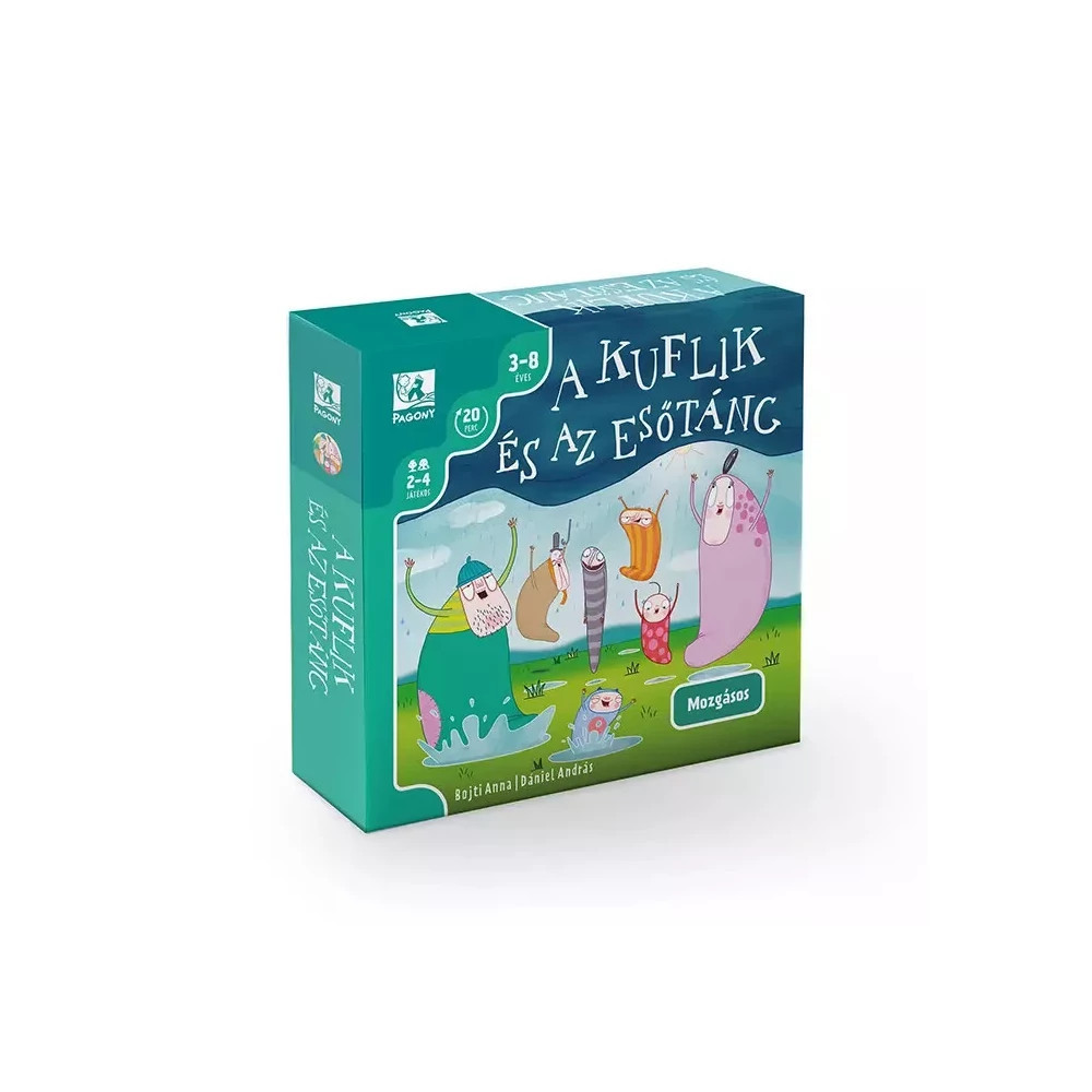 Járjátok el az esőtáncot! Az örökmozgó gyermekek imádni fogják ezt a kooperatív társasjátékot. Kint már órák óta zuhog az eső, és kezd befolyni a kuflik kupacába. A feladatotok megtalálni az esőtánc darabkáit, ezek segítségével összerakni a tánc koreográfiáját, és eljárni az esőűző táncot, hogy ismét kisüssön a nap, felszárítva minden tócsát és pocsolyát. A játék fejleszti a memóriát és a mozgáskoordinációt.