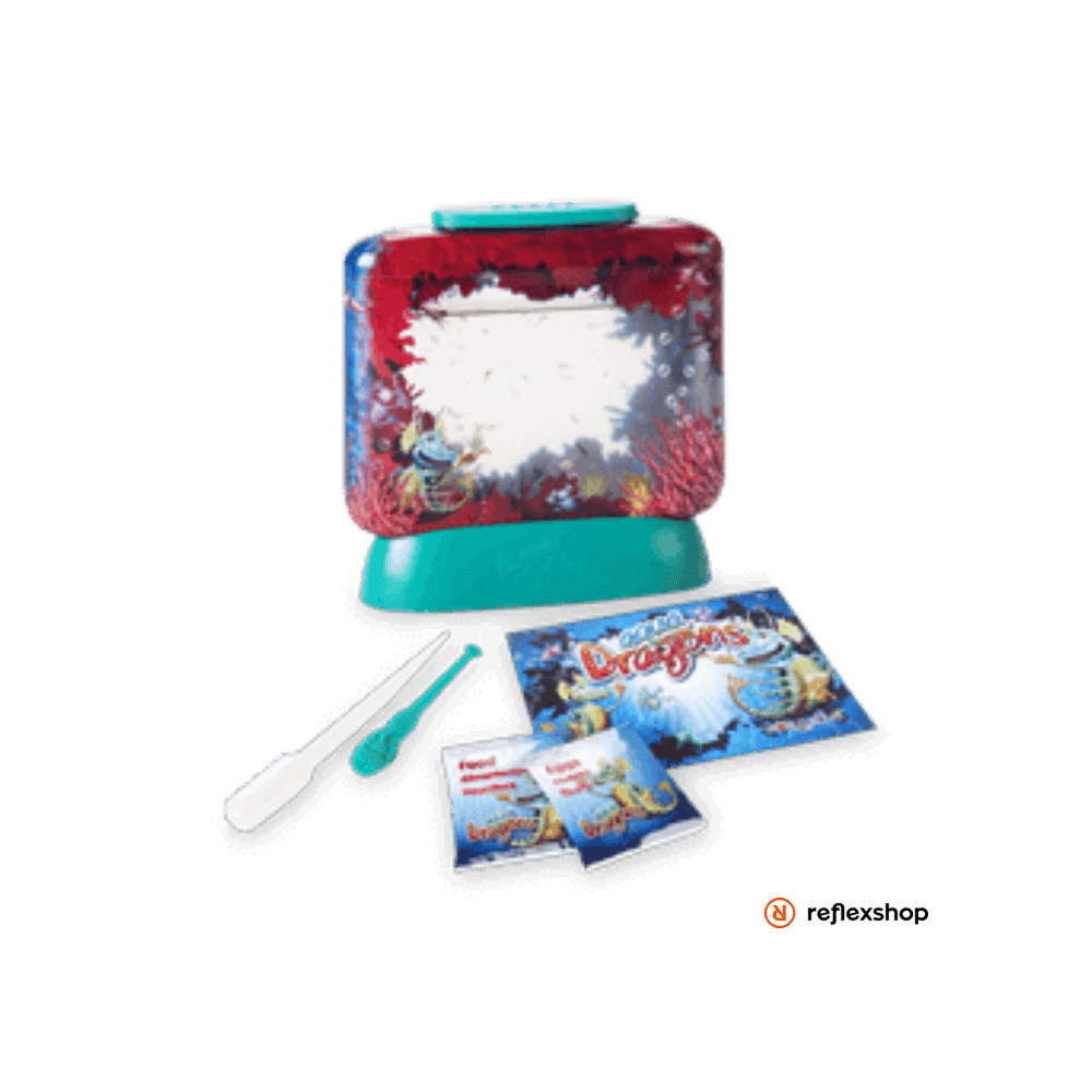 Fedezd fel a dinoszauruszokkal egyidős vízi kedvencek különleges világát az Aqua Dragons Vízalatti Élővilág készlet segítségével! Az alvó állapotú kis rákok vízzel felélednek és már az első héten látványosan fejlődnek. Ezek az akár 2 cm-re is megnövő állatok sárkányokra emlékeztetnek és boldogan úszkálnak a vízben, meghálálva a figyelmes gondoskodást. Könnyen kezelhetők, így akár több generációjuk is nevelhető otthonodban. A LED világítással ellátott Deluxe szett nemcsak díszíti a gyerekszobát, de lehetővé teszi, hogy vízi barátaidat sötétben is gyönyörködhess. Az Aqua Dragons csomag tartalma: