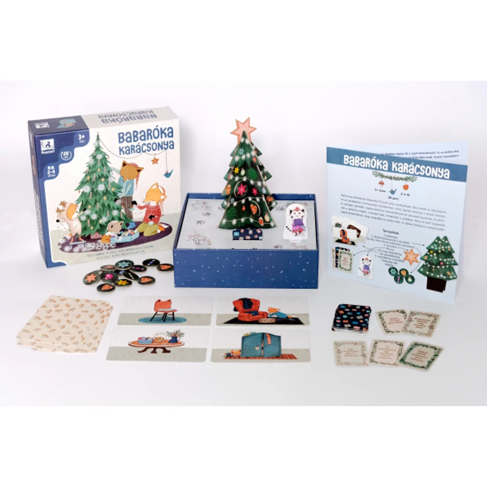 Babaróka karácsonya egy izgalmas, kooperatív társasjáték, amelyet már a legkisebbek is élvezhetnek, hiszen 3 éves kortól ajánlott. A játék célja, hogy minél gyorsabban segítsenek a Babarókáknak feldíszíteni a karácsonyfát, mielőtt Kiscica megérkezik a vendégségbe. Apróka véletlenül kiborította a díszes dobozt, így a játékosoknak össze kell szedniük a díszeket, és vissza kell helyezni azokat a fára. A játékosok feladata kitalálni, melyik dísz gurult be a bútorok alá, és ezeket a díszeket feltenni a fenyőfára. Minden alkalommal, amikor nem sikerül díszt találni, a kiscicás bábu előrébb lép. A játék közben a játékosok beszélgetnek, tippelgetnek, ezzel is segítve a feladat megoldását. Tökéletes lehetőség a családok számára, hogy együttműködjenek és közösen élvezzék a karácsonyi előkészületeket.