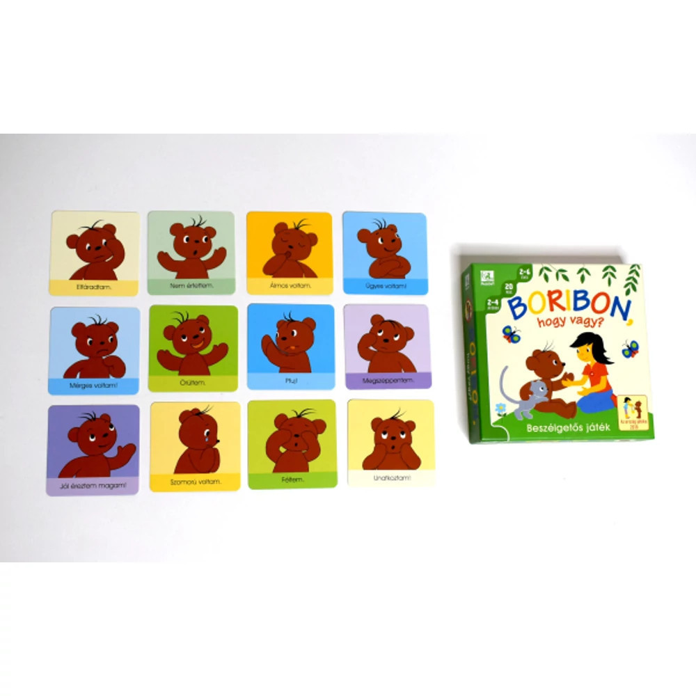 Boribon ezúttal beszélgetni hív! Segítségével játékosan fejleszthetőek az empatikus készségek. A játékban az érzelmek, kívánságok és történések kifejezésén van a hangsúly, így könnyedén elmerülhettek egy valódi beszélgetésben. Használjátok a mesekártyákat, hogy megosszátok gondolataitokat! Az érzelmek kifejezése sokszor kihívást jelent, még a felnőttek számára is, hát még a gyerekeknek! Ha nehezen megy a napi események megbeszélése, vagy gyermeked nem tudja kifejezni gondolatait, Boribon segíthet! A játék gazdagítja a közösen eltöltött időt, és segíti az egymás lelki világához közelebb kerülést.