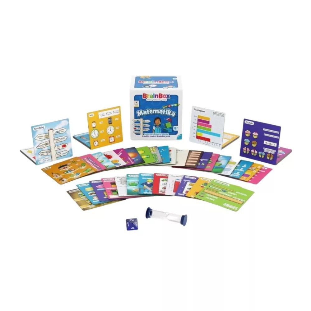 A BrainBox doboz tele van játékos feladványokkal – te hány dolgot tudsz megjegyezni 10 másodperc alatt? Hány szög van egy háromszögben? Mennyit ér 8 × 6? Felismered, ha egy minta szabályosan ismétlődik? A BrainBox – Matematika játékkal a számolás és a koncentráció válik igazi élménnyé! Játsszunk együtt, tanuljunk együtt! Ez a kártyajáték szórakoztató módon hozza közelebb a számok világát. Nem kell tankönyv – csak figyelem és gyors észjárás! A játék fejleszti a memóriát, a logikus gondolkodást és az önbizalmat. Ideális választás családi estékhez, iskolai gyakorláshoz vagy baráti kihívásokhoz. Hogyan játszd?