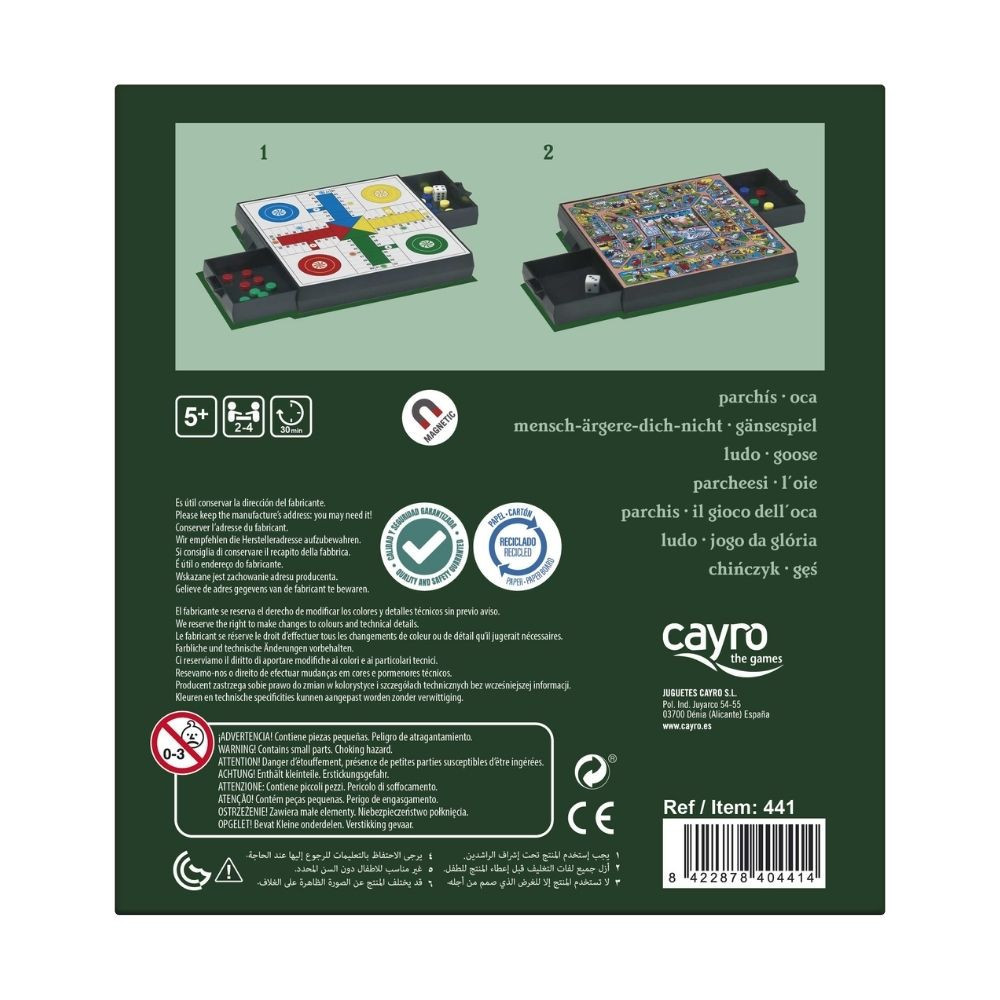 Két klasszikus társasjáték, a Ki nevet a végén? és a Lúdjáték most mágneses, kompakt formában érhető el. A műanyag és a mágnes kombinációja gondoskodik róla, hogy az elemek ne mozduljanak el könnyen, így ideális választás utazáshoz vagy gyerekes családoknak, akik kedvelik a többfunkciós társasjátékokat. Választhatsz, hogy a játékmenet Ki nevet a végén? módra vagy Lúdjáték módra történjen: az egyikben a figurákat kell a célmezőbe juttatnod, míg a másikban a mezőkön haladsz a dobókocka szabályai szerint, hogy elérd a lúd mezőjét. A játék angol nyelvű, de nyelvfüggetlen.