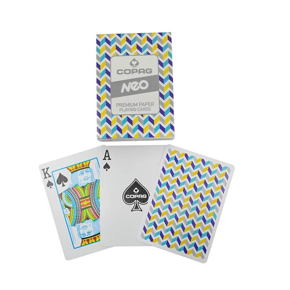Vibráló színek és eszméletlen trükkök várnak a Copag Neo Tune kártyacsomaggal! Legyél kezdő vagy haladó, ez a csomag neked való. Különleges bevonatának köszönhetően extra tartós és strapabíró, így sosem kell aggódnod a hosszú élettartam miatt. Szakemberek által fejlesztett, és profi bűvészek közreműködésével tesztelt póker méretű bűvészpakli, amely a True Linen B9 Finish borítás miatt könnyen kezelhető és rugalmas. A pakli tartalmaz 52 kártyát, 2 Jokert, valamint 1 üres arcot és 1 Double Backer pókert. A Copag Neo papírkártya második generációjának részeként élénk színei miatt gyűjtők körében is népszerű választás, és tökéletesen kiegészíti a Neo paklik sorát.