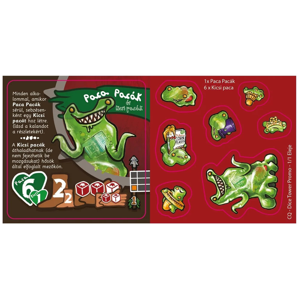Frissítsd a CoraQuest alapjátékodat ezzel az izgalmas promócsomaggal! A csomag három különleges lapot kínál, hogy még színesebbé és izgalmasabbá tegyék a kalandjaidat. Bemutatkozik Carson, az új játszható hős, aki egyedi képességeivel gazdagítja a csapat taktikai lehetőségeit. Továbbá találkozhatsz Villámseb Vinnyogóval és Hatalmas Húsheggyel, akik kétféle alakban játszhatók, így sokoldalú segítséget nyújtanak. A kihívások itt nem érnek véget: Paca Pacák és hat kicsi paca is a csomag része, egy új főellenség, akivel szemben egy bónusz mese keretében veheted fel a harcot. A történet letölthető, és azonnal beilleszthető a kampányodba. Fontos: ez a promócsomag önmagában nem játszható, a CoraQuest alapjáték szükséges hozzá. Tökéletes választás, ha új színeket vinnél a kalandjaidba!