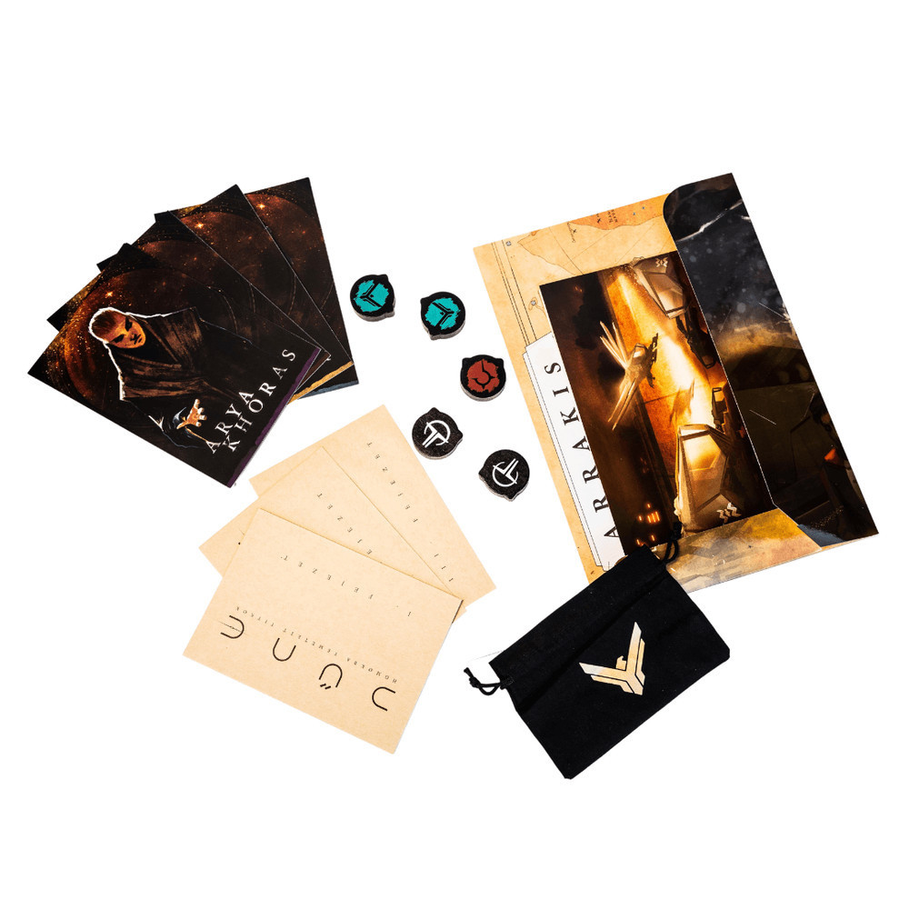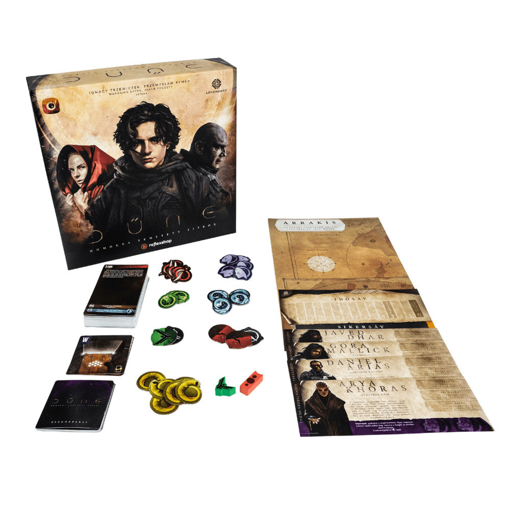 Dűne: Homokba temetett titkok egy különleges történetvezérelt társasjáték, ahol kooperatív módon csatlakoztok a Harkonnen-ház elleni ellenálláshoz. Különböző kihívásokkal teli kalandokat élhettek át, fejlesztve karaktereiteket fejezetről fejezetre.