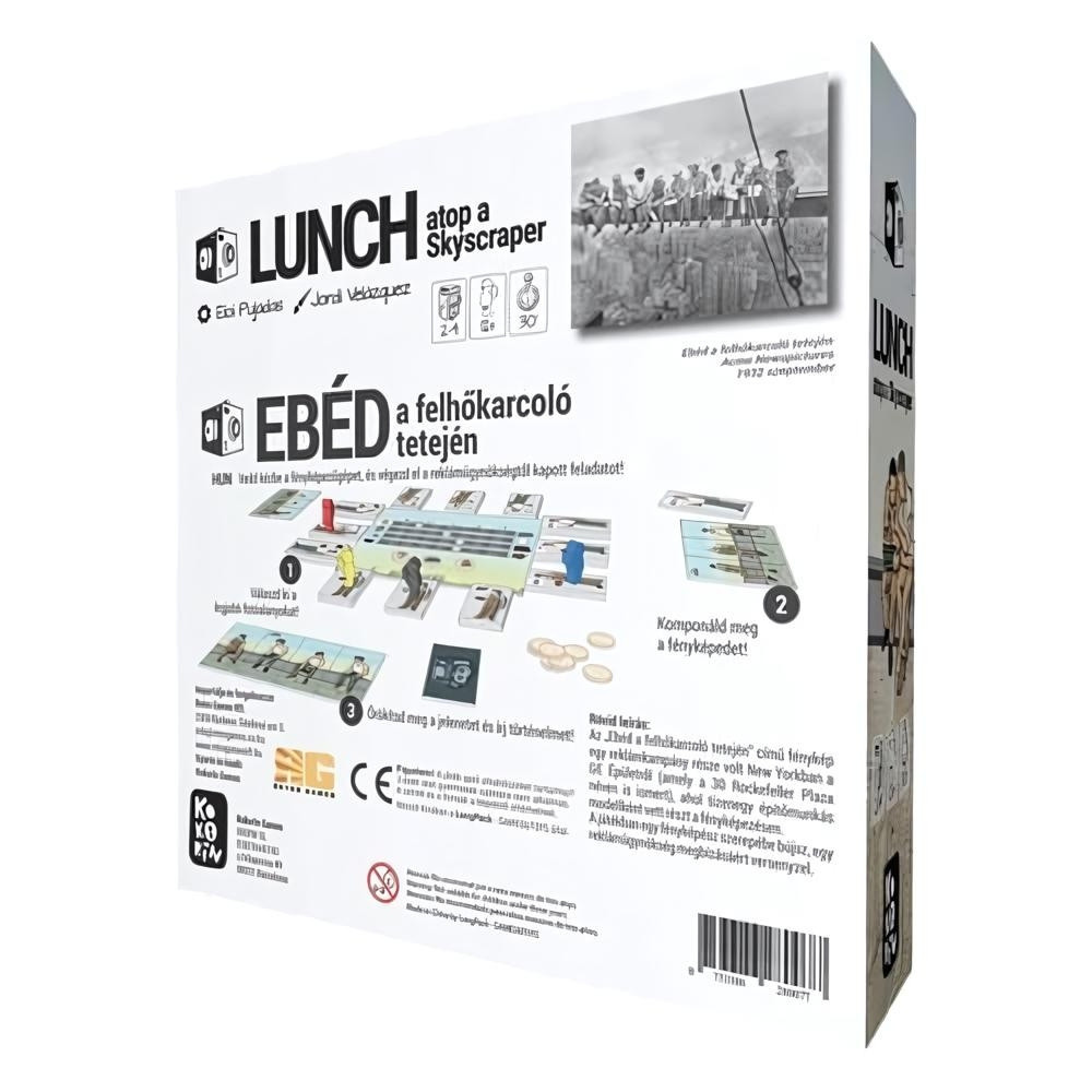 Az „Ebéd a felhőkarcoló tetején – LUNCH atop a Skyscraper” társasjátékban egy fényképész szerepébe lépsz, és egy ikonikus jelenetet próbálsz minél hűebben újraalkotni. A cél, hogy az „Ebéd a felhőkarcoló tetején” hangulatát megragadva minél több pontot gyűjts, és a lehető legjobban sikerült felvételt készítsd el. Ehhez építőmunkás-lapkákat kell gyűjtened, majd a megfelelő sorrendben elrendezned őket, hogy összeálljon a képed. A pontokat a 8 ismertetőjegy leghosszabb, megszakítás nélküli sorozataiért kapod.