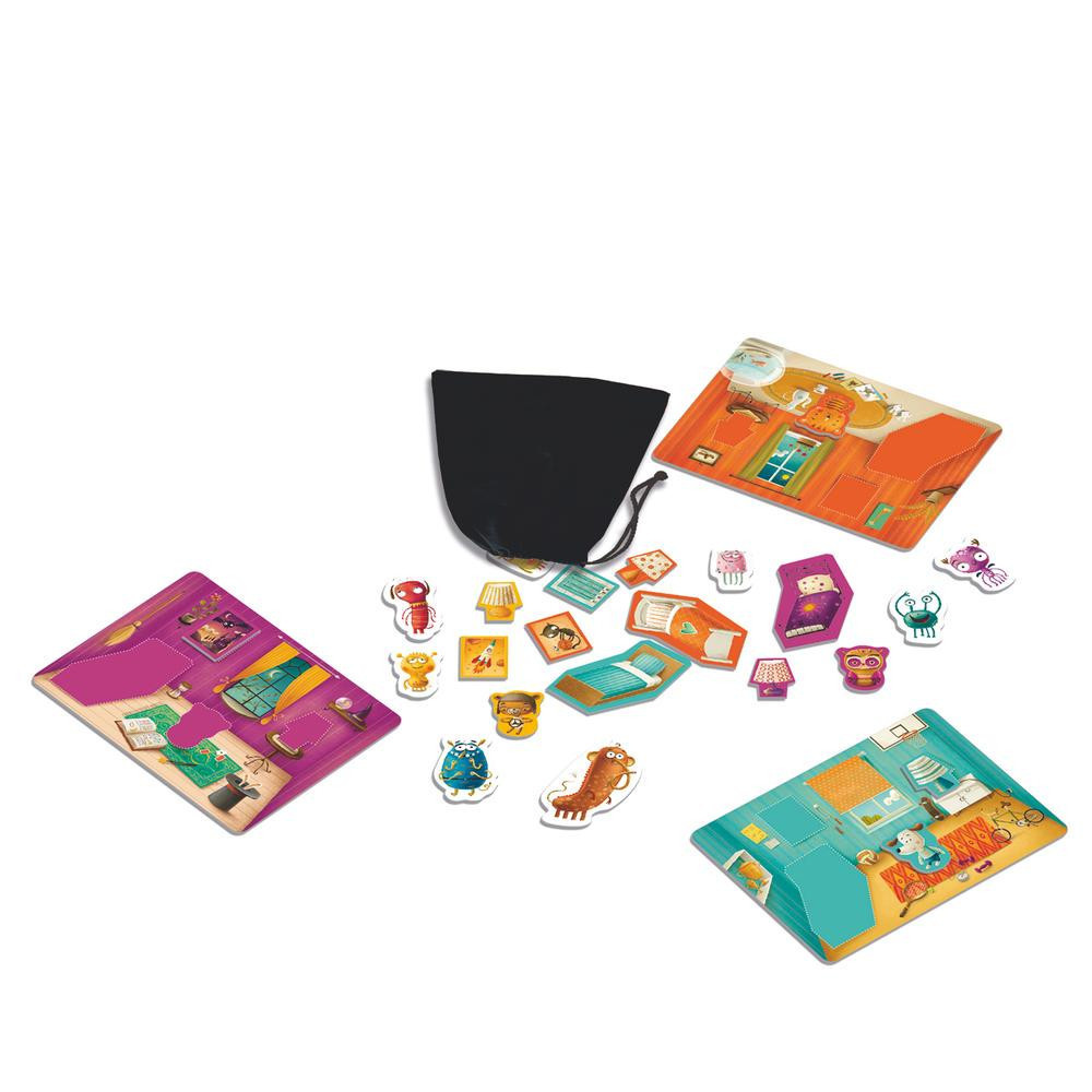 Ismerős ez a napi rutin? Alvásidő van, de a gyerekszobában még mindig káosz uralkodik. Először is a játékokat el kell rendezni, mielőtt a gyerekek lefeküdnének. De hova teszed a macit és hol volt korábban a lámpa? És, ha nem vigyázol, könnyen szembetalálhatod magad egy kis szörnyeteggel is. A játék csak német, olasz, francia és spanyol nyelvű szabályt tartalmaz. A gyerekeknek szóló játékban a játékosok kihúzzák a tárgyakat az erre hivatott húzózsákból, és rá kell helyezniük azokat a játékos táblára. Tapintással kell felismerniük az alakzatokat és megtalálni a megfelelő mezőket az alakzatokhoz. Néha szörnyek rejtőznek közöttük, melyeket nehéz felismerni. Ha szörnyet fogsz, a lehető leghamarabb meg kell szabadulnod tőle. Mert a világon egyetlen gyerek sem tud elaludni szörnyeteggel a szobájába. Az a játékos nyer, aki először rendet tesz a szobájában.