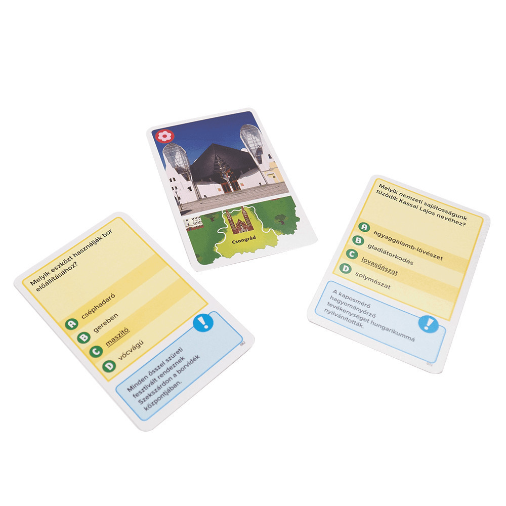 Versenyezzetek keresztül Magyarországon, ismerjétek meg a különböző régiókat, és válaszoljátok meg a kultúrával, hungarikumokkal kapcsolatos kérdéseket. Te mennyire ismered hazánkat? Teszteljétek együtt tudásotokat! Nincs is szórakoztatóbb, mint játszva tanulni és ismereteinket bővíteni! Ismered a pampuskát? Tudod mi az a busójárás? Vagy melyik város kapta a Civitas Fortissima címet? Szállj versenybe Magyarország régiói között, látogass meg különféle megyéket és válaszolj helyesen a magyar kultúrával, hagyományokkal és természettel kapcsolatos kérdésekre! Dobj a kockával, vándorolj az országon belül, és kapcsolódj be a különféle régiók egyedi kérdéseibe! Minden helyes válasz egy újabb lépés a győzelem felé; aki pedig elsőként bizonyít mind az 5 kategóriában, megnyerte a játékot! Tedd próbára a tudásod és bizonyítsd!