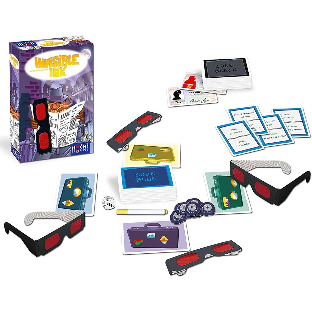 Válj Te is kettős ügynökké az Invisible Ink társasjátékban, és lépj be a nyomozás sűrűjébe! A játék különleges szemüvegeket igényel, amely felhelyezésekor egyáltalán nem biztos, hogy mindent látni fogsz. Most kezdődik a találgatás: rajzolj anélkül, hogy megnéznéd, és próbáld kitalálni anélkül, hogy látnád! Ez a játék igazi kihívás lehet mindenkinek, különösen, ha kettős ügynökként próbálsz meg boldogulni, és a figyelmedet maximálisan összpontosítani kell. Nyomozd ki a játékosok láthatatlan írásait, ahol a szemedre nem hagyatkozhatsz. Légy észnél, találgass látatlanba, emeld a tétet és kockáztass! Fontos megjegyezni, hogy a játék nincs magyar nyelvű játékszabállyal.