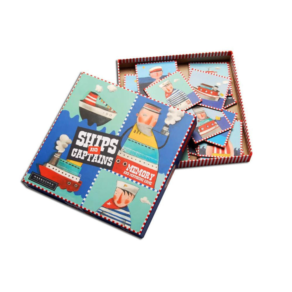 Köszöntünk a Hajók és kapitányok világában, ahol minden kapitánynak megvan a maga hajója! Az évek során úgy összenőttek, akár a kutya és a gazdája: egyre inkább hasonlítanak egymásra. Ha ügyesen odafigyelsz, könnyen megtalálhatod a párokat ebben a vidám forma- és színfelismerős játékban, amely már 3 éves kortól játszható. A Marbushka társasjátékok között mindegyik művészien kivitelezett grafikával bír, garantálva a gyerekek figyelmének lekötését. A játék során kedves kis történetek kísérik a szórakozást, ami még élvezetesebbé teszi ezt a mesés társasjátékot. A játék tartalma: