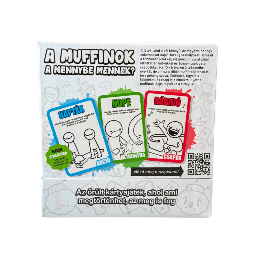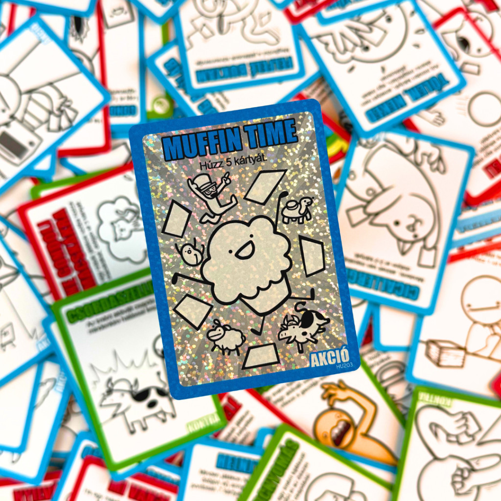A Muffin Time egy vidám és kaotikus kártyajáték, ahol a célod az, hogy pontosan 10 kártyával kezd a körödet, és ezzel megnyerhesd a játékot. Játsz barátaiddal, családoddal vagy akár hiperintelligens háziállataiddal, miközben egyedi kártyákból álló pakliból húztok és játszotok. A játék tele van váratlan fordulatokkal, ahol csapdák, kontrakártyák, és mókás akadályok várnak rád. A játékmenet egyszerűen előkészíthető: keverd meg a kártyákat, ossz mindenkinek 3-3 kártyát képpel lefelé. Az lesz a kezdő játékos, aki kitalálta ezt a játékot. Körödben két opció közül választhatsz: húzhatsz egy kártyát a pakliról vagy kijátszhatsz egy akciókártyát a kezedből. Ha megelégszik a kezed egy kontrasztkártyával, bármikor játszhatod, még ha nem is a te köröd van. Ha 10 kártya van a kezedben, kiáltsd: Muffin Time! Így a többiek figyelmeztetve lesznek, hogy a győzelemhez közeli vagy. Nem tudnak megakadályozni? Gratulálunk, Te vagy a győztes!