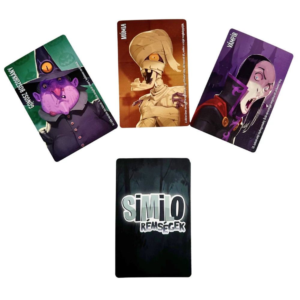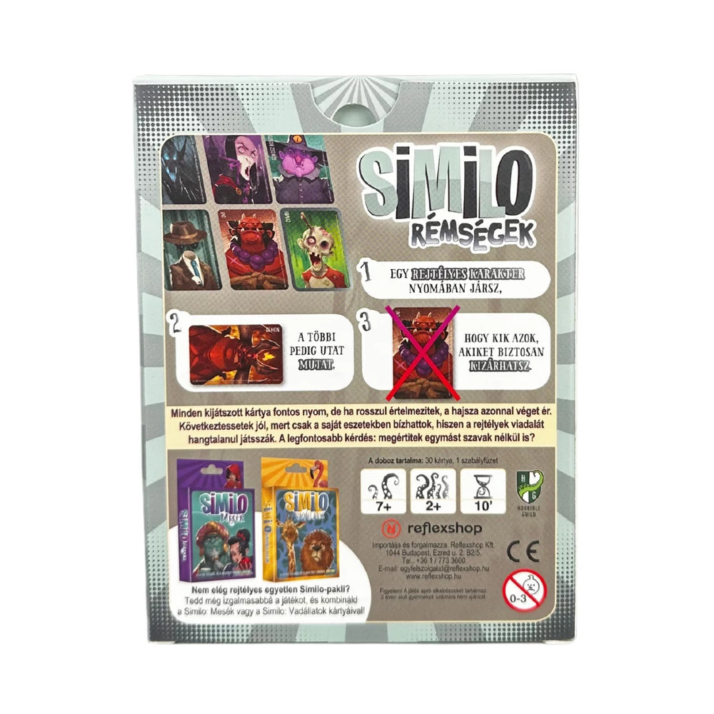 Az asztal körül csend ereszkedik le, miközben mindenki próbálja kitalálni a titokzatos alak kilétét. Az izgalmas, deduktív játékban az apró jelekből és finom utalásokból juthattok közelebb a rejtély megoldásához. Merülj el a sötétségbe, ahol a Rémségek Similo pakli vérfagyasztó karakterei várnak, hogy felfedd, ki rejtőzik közöttük. Minden forduló egy lépéssel közelebb visz a titkos karakterhez, de vigyázz, minden hibás lépés a kísértetek felé vezethet! A doboz tartalma: