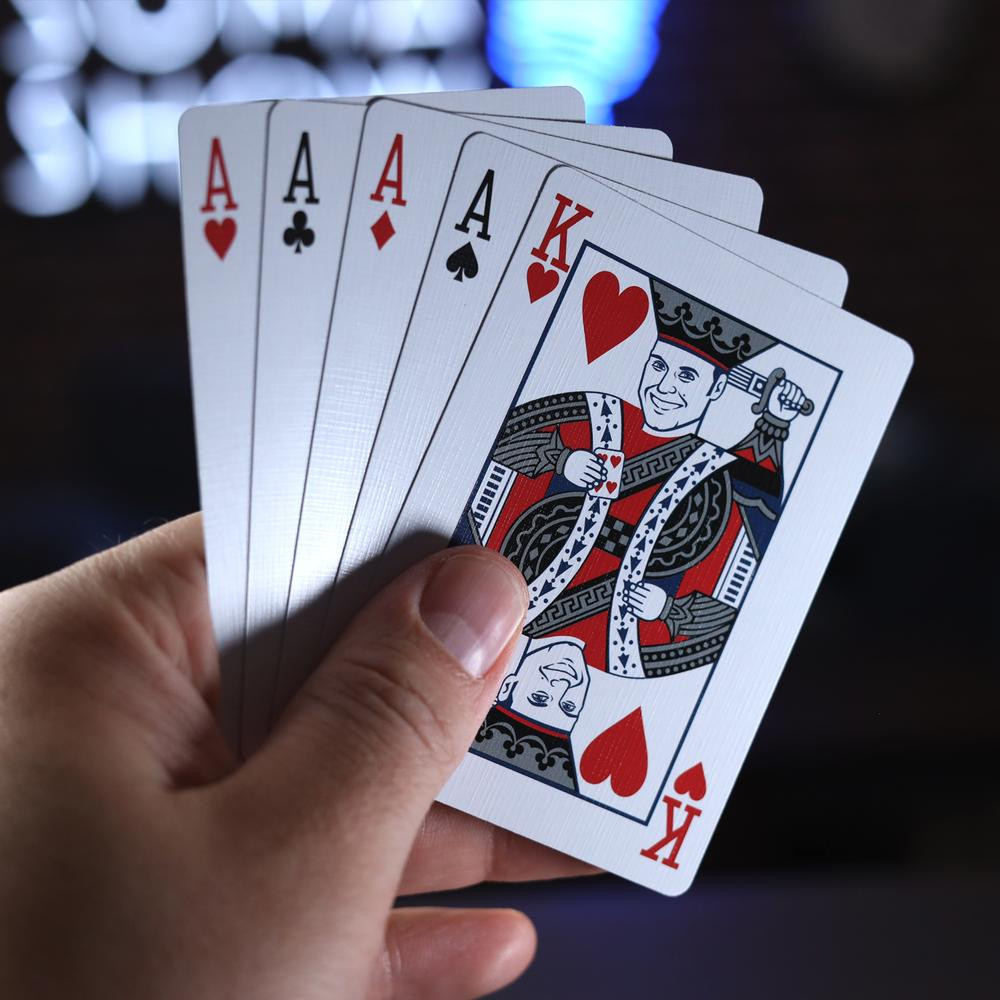 • 2 spéci lap van a csomagban: a kék csomagban egy teljesen fehér lap és egy különleges pikk kilences, a piros csomagban pedig egy káró 13-as és egy kör dáma.
