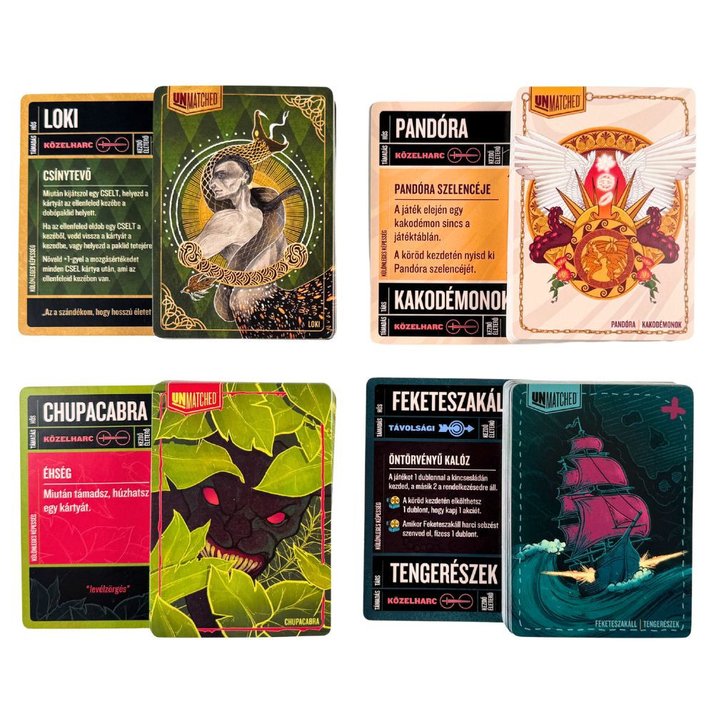 A csatatéren senki sem egyenlő! Bemutatkozik a Legendák Ligája harmadik és utolsó kötete, ahol négy teljesen különböző hőssel találkozhatsz: Feketeszakáll, a félelmet nem ismerő kalózkapitány; a titokzatos Chupacabra, a vérszívó szörnyetegek legendája; a csalafinta Loki, az északi mitológia kedvence; és végül Pandóra, az átokkal sújtott, de mégis különleges nőalak. Az Unmatched univerzum a legendás hősök izgalmas találkozása. Minden hős saját paklival és képességekkel érkezik az arénába, hogy megmutassa, mire képes! Az epizódok önállóan is játszhatók, de szabadon kombinálhatók, hogy a mitológia és a képzelet harcosai bárhol, bármikor összemérhessék erejüket. A játék három egyszerű akción alapul: tervezés, mozgás és támadás, melyek mögött komoly taktikai mélység rejlik. A Harmadik felvonás új hősökkel, harctérrel és stratégiákkal bővíti az arénát. Élvezd a két új pályát: Velencét és a Mikulás műhelyét!