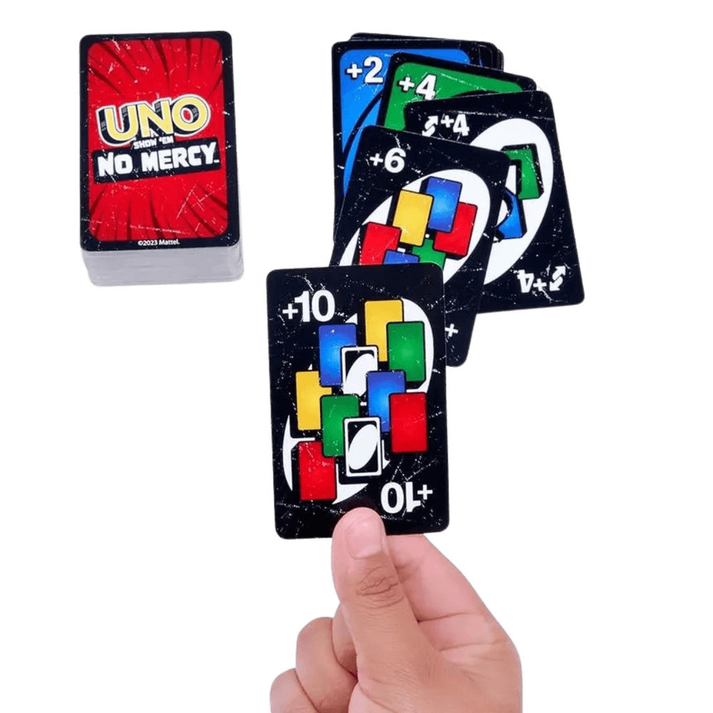 Az UNO - No Mercy az eddigi legbrutálisabb UNO játékváltozat! Több kártyával, keményebb büntetésekkel és új szabályokkal csábít, amelyek révén a játékosok több lapot halmozhatnak fel, mint valaha. Készen állsz egy valódi kihívásra? Az Uno - No Mercy a klasszikus UNO játék vadonatúj, izgalmas verziója, ahol nincs helye könyörületnek! Ez a játék nemcsak a megszokott szabályokat, hanem új taktikai elemeket is bevezet, amik minden lépésedet lényegessé teszik. Ne hagyd, hogy a színek és számok összezavarjanak – az UNO - No Mercy verzióban bármit bevethetsz a győzelemért! A játék során új, erőteljes kártyák is feltűnnek, amik alapjaiban változtathatják meg a játékmenetet. Legyél résen, mert más játékosok nem fognak habozni, hogy megnehezítsék a dolgod! A cél egyszerű: légy az első, aki kijátssza az összes kártyáját. Ez a gyors tempójú, feszült változat tökéletes választás azoknak, akik még izgalmasabb kártyajátékra vágynak. Egyre nagyobb a verseny – készen állsz, hogy küzdj a győzelemért?