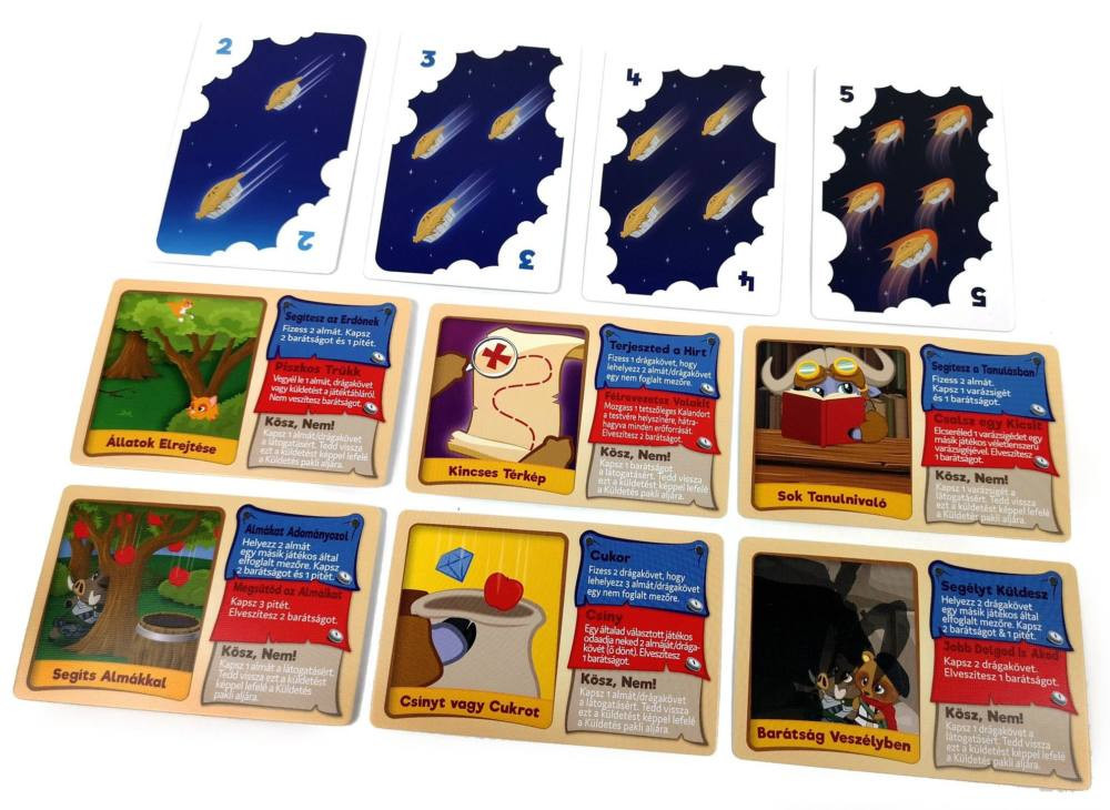 Csatlakozz a mókához ebben az aranyos családi játékban, ahol mindannyiotoknak két Kalandort kell irányítani Pomme királyságában! Teljesíts különféle feladatokat és kihívásokat a Szüreti Lovagi Játékokon való részvételért és a korona elnyeréséért. Ahhoz, hogy első legyél, minimum négy trófeát kell összegyűjtened nyolc kategóriából - nem könnyű feladat! A játékmenet során mozgás, keresés és készítés révén gyarapíthatod barátságaidat, erősítheted akcióidat, teljesítheted a küldetéseket, varázsigéket tanulhatsz, drágaköveket és almákat szállíthatsz az Everfree kastélyba, és talán részt vehetsz egy pite-csatában is. A játék tartalmaz szabálykönyveket különböző játékmódokhoz, 14 mini figurát, festészeti útmutatót, teljesítménylapot, 5 dobókockát, 24 almát, 24 drágakövet, több mint 70 jelölőt, lapkákat, táblákat, 71 kártyát, és 3 darabos játéktartót. Válj az igazi bajnokká a trófeák összegyűjtésével!