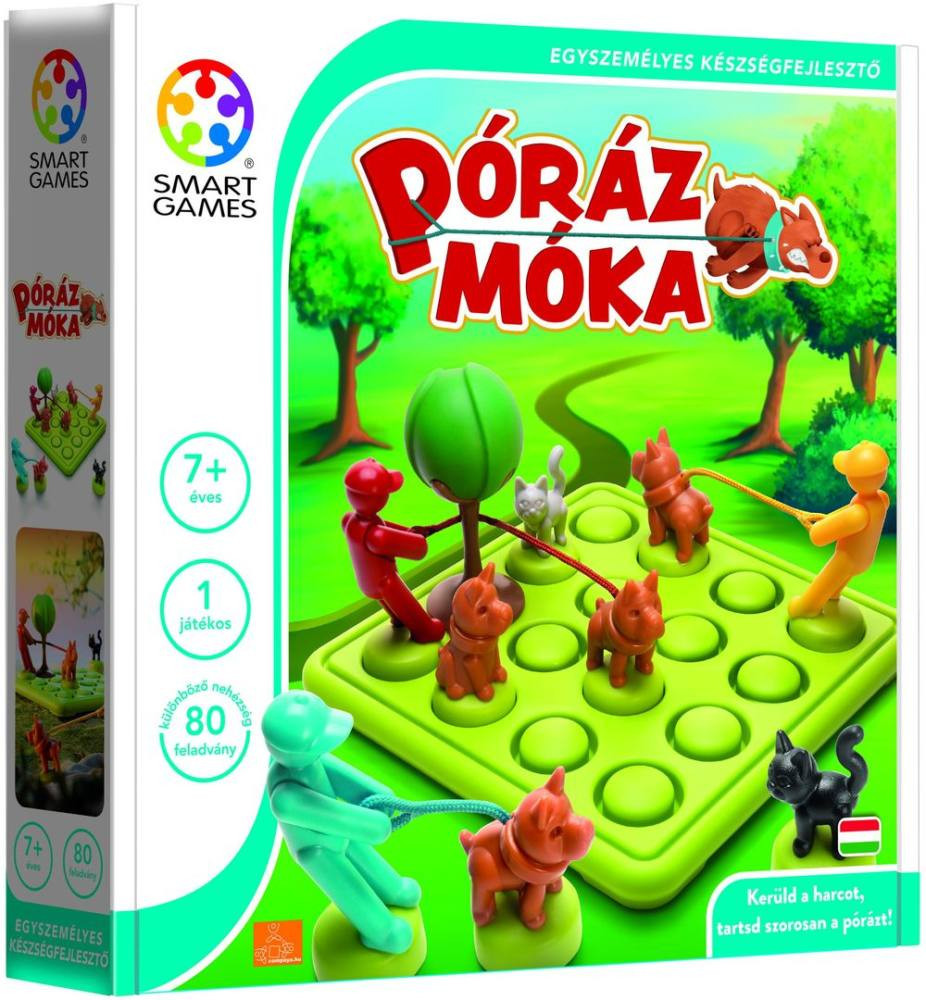 A Póráz móka logikai társasjáték a Smart Games kínálatából valóban mókás kihívásokat tartogat minden korosztály számára. Az egyszerű szabályoknak köszönhetően már 7 éves kortól ajánlott, de a bonyolultabb feladatok garantáltan lekötik az idősebbeket is. A játékban 80 különböző feladvány található, melyek mindegyike megtanítja a játékosokat a logikai következtetésre, az előre tervezésre, a képfelismerésre és a térlátásra.