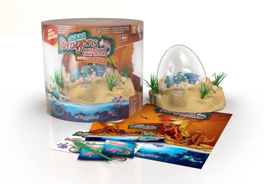 Az Aqua Dragon EggScavation dinoszaurusz keltető egy igazi időutazást kínál. A doboz alvó állapotban lévő kis rákokat tartalmaz, melyek a víz hatására életre kelnek. A tojás alakú akvárium alját egy baby dinoszaurusz modell díszíti, így a kis vízi rákok igazi őskori környezetben úszkálnak. Megfigyelheted, hogyan reagálnak a buborékokra, melyeket egy levegő pumpa segítségével juttathatsz hozzájuk. Ezek az apró lények több mint 200 millió éve élnek a Földön, így a gondozásuk nemcsak szórakoztató, de tanulságos is. Könnyű őket gondozni, kis odafigyeléssel akár több generációjuk felnevelhető. Az akváriumban megfigyelheted, hogyan nőnek fel, esznek és játszanak. Az Aqua Dragonok gondozása fokozza a kíváncsiságot és növeli a felelősségérzetet, miközben a szobád igazi látványosságává teszi az élő dekorációdat. Fedezd fel a vízi sárkányok különleges világát és rendeld meg még ma!