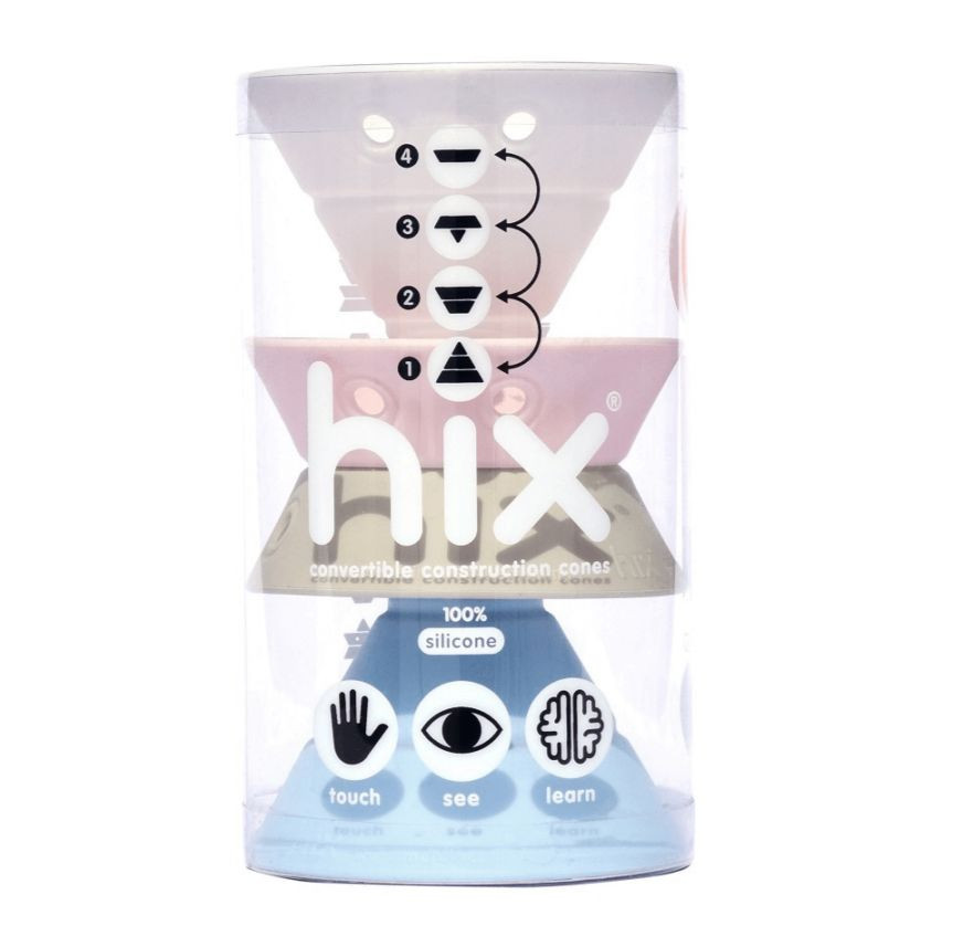 A Hix egy sokoldalú új építőjáték, amely négy átalakítható, rugalmas szilikongumiból készült kúpból áll. Mindegyik kúp négy alapformává alakítható, amelyek egymásra helyezhetők és egymásba illeszthetők számtalan különböző konfigurációban. A Hix-szel öröm játszani, és minden korosztály számára elérhetővé és szórakoztatóvá teszi a geometriát. Játékosan edzi a vizuális-szociális képességeket, a szem-kéz koordinációt és a finommotorikus készségeket. Végre intelligens építőkockák, amelyek nem fájnak, ha véletlenül rájuk lépsz, és nem csapnak zajt, amikor lezuhannak.