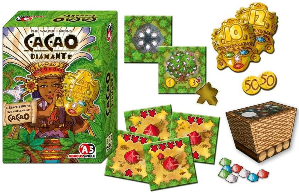 A Cacao: Diamante kiegészítő stratégiai társasjáték számos díjat elnyert már azáltal, hogy izgalmas és kreatív játékot biztosít. Az alapjátékhoz képest nagyobb kihívást és változatosságot kínál, így még több stratégiát kell kidolgozni ahhoz, hogy a játékosok elérjék a győzelmet.