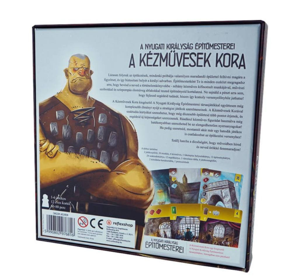 Lázasan folynak az építkezések a királyságban, ahol mindenki maradandó alkotásra vágyik. A Kézművesek Kora kiegészítő új mesterembereket hoz a városba, akik új szakmáikkal és szerszámaikkal még izgalmasabbá teszik a játékot. Szállj harcba a dicsőségért, hogy neved és műveid örökké fennmaradjanak! Ez a kiegészítő bővíti A Nyugati Királyság Építőmesterei társasjátékot, extra réteget adva a stratégiai kihívásoknak. Új szaktudás kártyákat szerezhetsz, hogy még díszesebb épületeket készíthess, és segédeid új képességekkel gazdagodhatnak. A kézműves figuráddal pedig hatékonyabban juthatsz elengedhetetlen nyersanyaghoz! Most akár egy hatodik játékos is csatlakozhat az építkezési versenyhez.