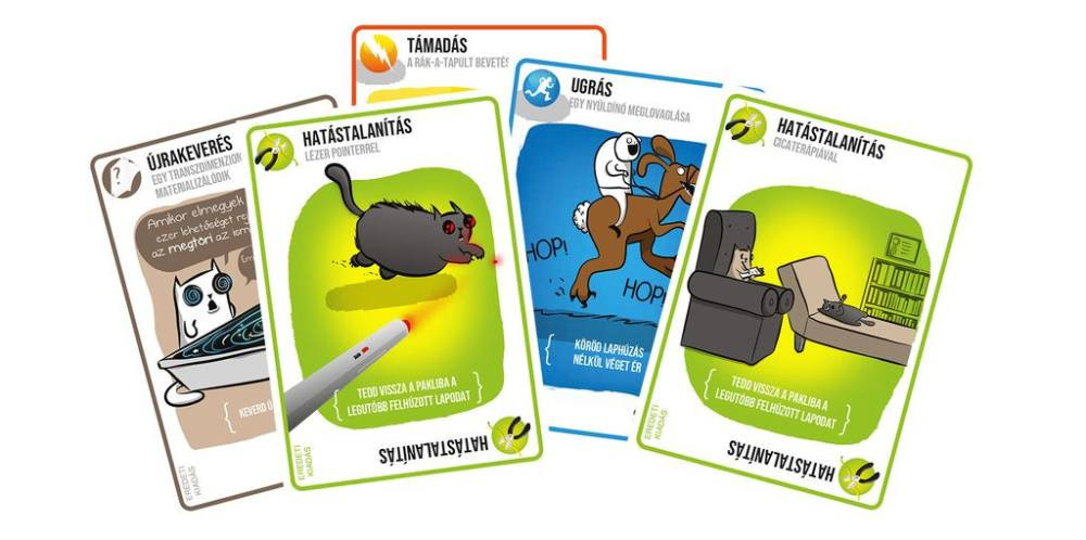 Vigyázat! Ezek a macskák robbannak! A Robbanó cicák a kártyajátékok macskásított orosz-rulettje, ahol senki sem lehet biztonságban! Figyeld alaposan a macskákat, különben bajt okoznak! Ez a játék nemcsak a macskabolondoknak szól, hanem azoknak is, akik kevésbé kedvelik a szőrös kis bajkeverőket. Az asztalra helyezett megkevert pakliból körönként kell lapokat húzni. Ha robbanó cica lapot húzol, felrobbansz és kiesel - hacsak nincs nálad egy hatástalanító lap, mint a lézer pointer, a cicajóga, vagy a macskamenta szendvics. Stratégiák széles tárházával készülj a köröd kihagyására, ellenfeleid megtámadására, vagy a robbanó cicák áthelyezésére. Aktiválj különleges erőt a MACSKA kártyákkal, amelyek különleges képességeket rejtenek. A játék során a lapok és az aktív játékosok száma csökken, így minden kör egyre izgalmasabb lesz. Ha szereted a cicasztori és a robbanások hangulatát, ez a játék garantáltan feldobja az estéket!