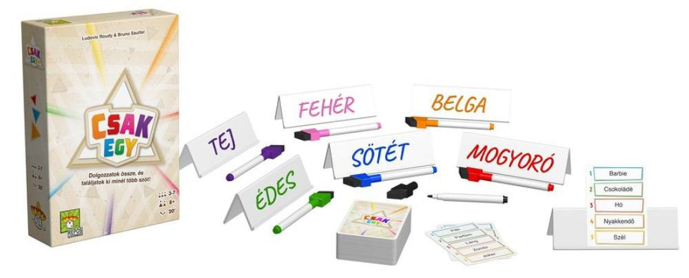A Csak egy társasjáték igazi csemege minden társasjáték rajongó számára! Ez a játék az aktív kommunikáció és a kooperáció fontosságára épül, így garantáltan fejlesztő hatású és szórakoztató egyaránt. A játékosok csak egy szót adhatnak meg, hogy rávezessék a csapatuk aktív játékosát a titkos szóra, azonban figyelniük kell, hogy ne adjanak meg ugyanazt a kulcsszót a játék során. Csak a csapatmunka és a jó kommunikáció vezet a győzelemhez!