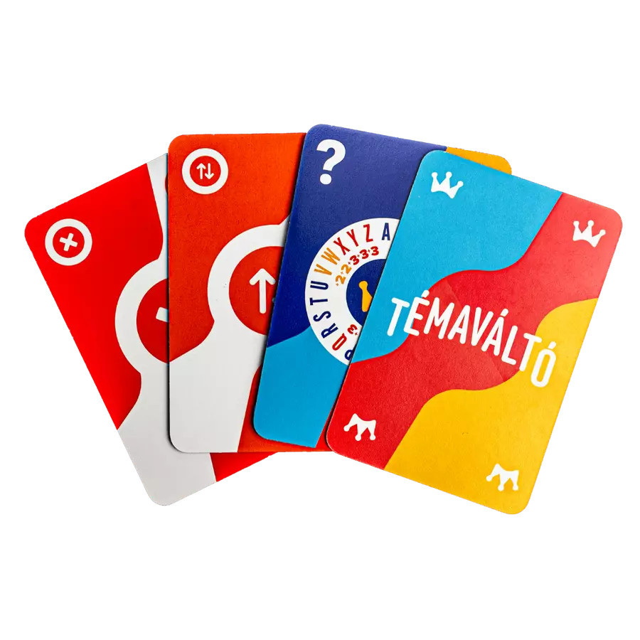 Hogyan játszd? Az 160 kártyából álló pakli két részre oszlik: a kék pakli tartalmazza a betű- és akciókártyákat, míg a vörös pakliban találhatóak a kategóriák. Minden új forduló alkalmával a győztes választ egy kategóriát, a cél pedig, hogy a megadott betűvel kezdődő szavakat találj az adott kategóriában. Húzz egy témaválasztó kártyát, hogy új kihívások elé állj, vagy játssz ki egy akciókártyát, és borítsd fel az állást! Az a játékos, aki először játszik ki minden kártyát, nyeri a fordulót. A játék három fordulón át tart, és az nyer, aki a legtöbb fordulót viszi.