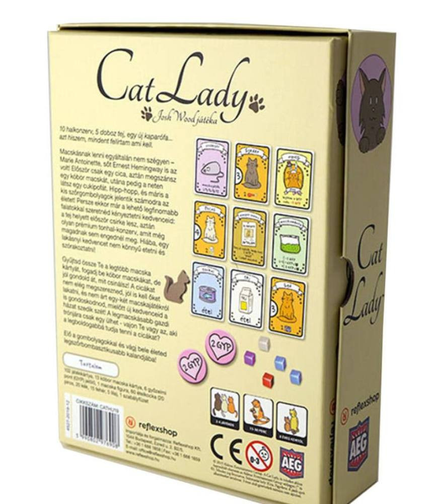 Ha szereted a cicákat, és szereted a társasjátékokat, akkor a Cat Lady társasjáték az, amire szükséged van. Érdekes játékmenetével és meseszép illusztrációival garantáltan elnyeri a szívedet, és az egész család szórakozását garantálja. Gyűjtsd be minél több cicát, etesd és gondoskodj róluk, hogy megelőzd, hogy a házadat szedik szét. A Cat Lady társasjáték a cuki cicás játékok új szintjét hozza el, és garantáltan az új kedvenced lesz a társasjátékok között!
