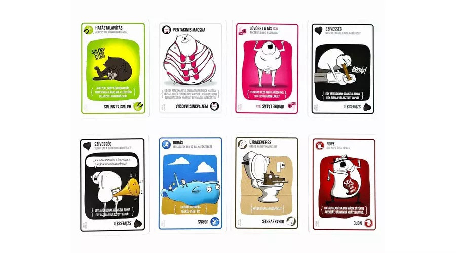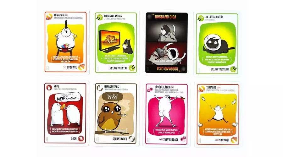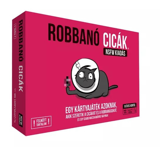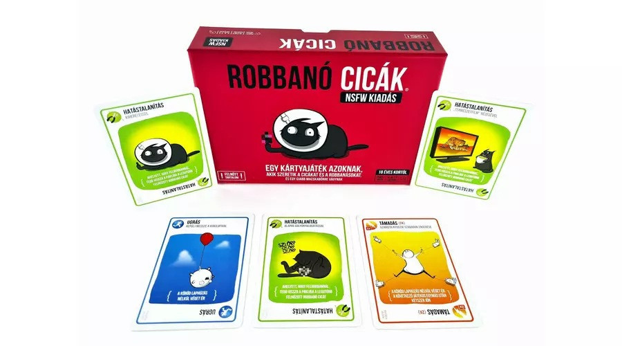 Ismerd meg a Robbanó cicák - NSFW játékot, egy igazán extrém és humoros partijátékot, ahol a célod, hogy elkerüld a végzetedet jelentő robbanó cica kártyát. Ebben a pörgős társasjátékban a játékosoknak minden trükköt be kell vetniük: lopás, blokkolás, sőt még a pakli újrakeverése is játszik. Az Exploding Kittens: NSFW kiadása tele van vicces és pimasz kártyákkal, amik megnevettetnek, miközben az atomrakéták ellen harcolsz. Akciókártyák segítségével másokat hátráltathatsz vagy előnyhöz juthatsz. A játékmenet során a figyelemelterelő kártyák segítenek megelőzni, hogy az elvetemült cirmoskák tönkretegyék mindazt, amit eddig elértél! Készülj fel, és ne hagyd, hogy ezek a macskák győzzenek!