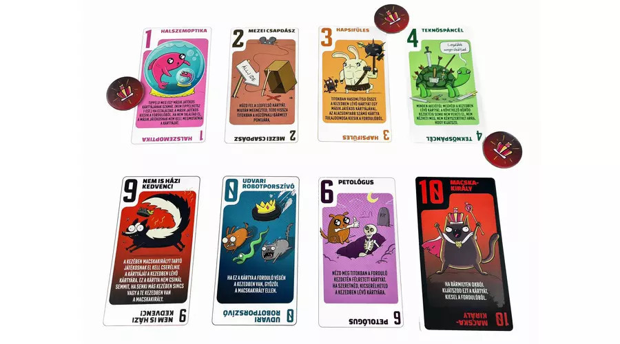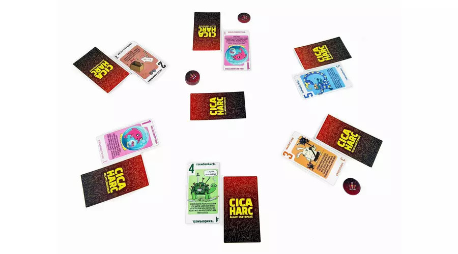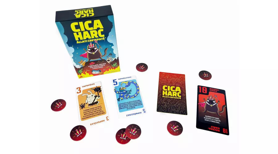 A Cicaharc – Állati csetepaté egy őrületes, taktikai kártyajáték, amelyben macskák és más állatok mérkőznek meg a hatalomért. Merülj el a színes és humoros világban, ahol minden tele van fordulatokkal és meglepő csapásokkal! A játék kiváló szórakozás 2-6 főnek és akár 5-30 perc alatt izgalmas csatát vívhatsz 8 év fölötti játékosokkal. Alkalmazz ravaszságot és taktikát, hogy te légy a tápláléklánc csúcsán! Döntsd el, melyik kártyát játszod ki minden körben, és használd ügyesen a különleges képességeidet: verj át, foszd ki vagy iktasd ki az ellenfeleidet! A doboz tartalma: