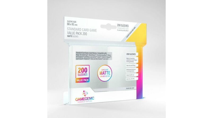 GameGenic Value Pack Standard Matte Sleeves (200 db 64x89 mm-es kártyavédő)