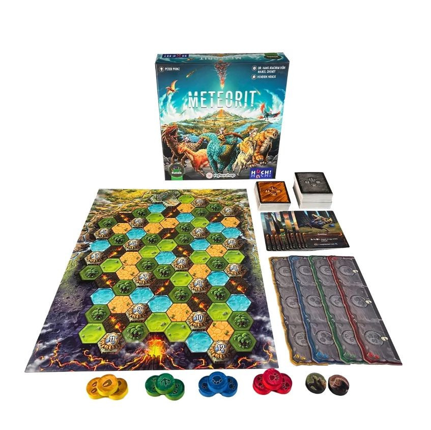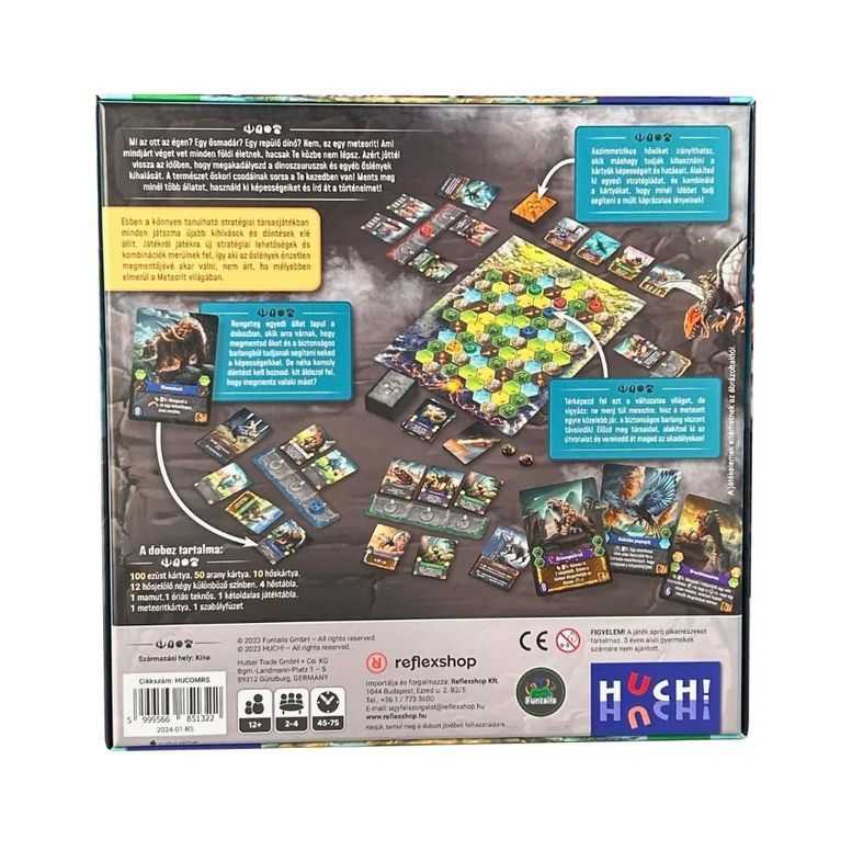Mi az ott az égen? Egy ősmadár? Egy repülő dínó? Nem, ez egy meteorit! Ami mindjárt véget vet minden földi életnek, hacsak Te közbe nem lépsz. Azért jöttél vissza az időben, hogy megakadályozd a dinoszauruszok és egyéb őslények kihalását. A természet őskori csodáinak sorsa a Te kezedben van! Ebben a könnyen tanulható stratégiai társasjátékban minden játszma újabb kihívások és döntések elé állít. Játékról játékra új stratégiai lehetőségek és kombinációk merülnek fel, így aki az őslények önzetlen megmentőjévé akar válni, nem árt, ha mélyebben elmerül a Meteorit világában. A játék célja: Utazz a távoli múltba, ahol lehetőséged van megmenteni a veszélyeztetett fajokat, mielőtt egy becsapódó meteorit elpusztítaná az élőhelyüket. Meg tudod változtatni a történelem menetét? Használd ki a hátralévő időt arra, hogy a lehető legtöbb állatot a barlangok biztonságába terelj. Különleges képességeik segítenek a következő mentési akcióban. Rengeteg egyedi állat várja, hogy megmentsd őket, ám néha komoly döntéseket kell hoznod: kit áldozol fel, hogy megments valaki mást?