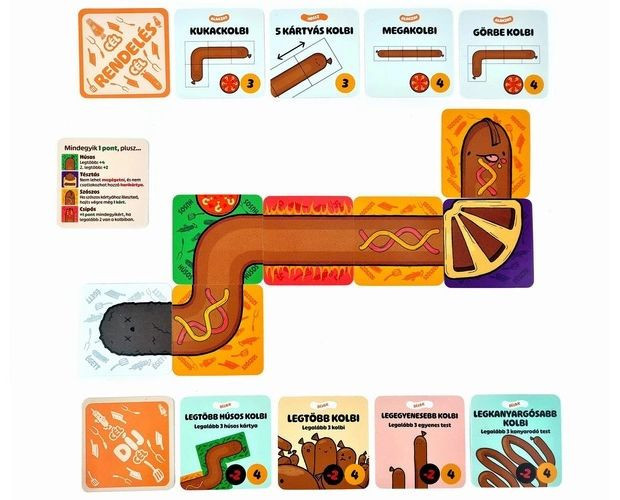 Ez bizony nem vicc. Ebben a Kolbi játékban egyedi falatokkal versenyezhetsz, ahol a kolbász útját kell egyengetned, hogy az a többiekénél is értékesebb legyen. Vajon mi fő ki ebből? A Kolbi egy vidám, versenyszerű társasjáték, amit családdal vagy barátokkal egyaránt élvezetes játszani. A cél, hogy kijátssz a többiekkel, ahol csak tudsz, és a te kolbászod legyen a legkülönlegesebb! A játékmenet lapelhelyezésre és kollekció-gyűjtésre épül.