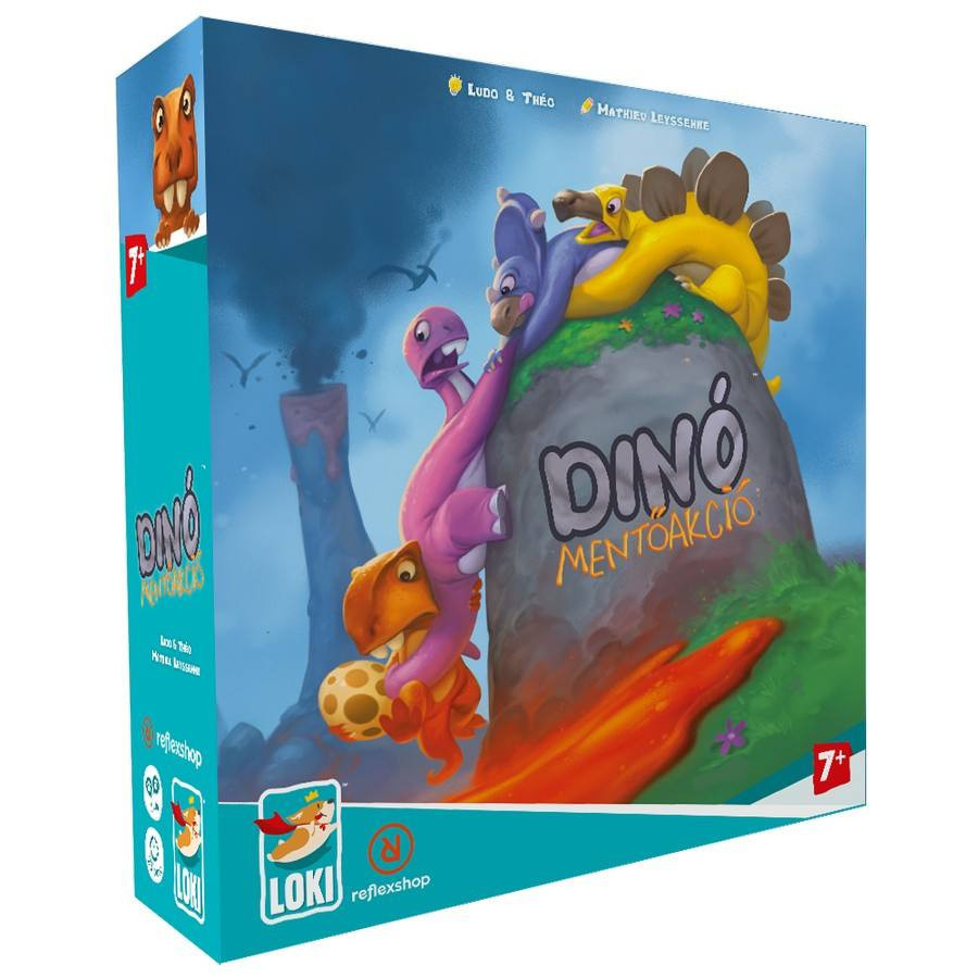 Mutasd meg, milyen jól tudsz együttműködni a barátaiddal vagy családoddal ebben az izgalmas és kooperatív társasjátékban! Húzz egy lapkát, helyezd le a játéktéren, és igyekezz biztonságba helyezni a dinókat a hegyek tetején! De vigyázz a lávával és a meteoritokkal! Egy ellenfeletek van, mégpedig az idő! Vulkánkitörések és meteoritok fenyegetik a négy kis dinót. Segítsetek nekik megmenteni a tojásaikat és elmenekülni a biztonságos hegyekre! A játék során lapkákat húztok és helyeztek le a játéktáblára. Egyre forróbb a talaj! Ha lávafolyam-részlet jelenik meg, azt a megfelelő vulkánhoz kell illeszteni. Beszéljétek meg, hogyan irányítjátok a lávafolyamot, nehogy elzárjátok a dinók útját! A lapka lehelyezése után lépjetek az egyik dinóval a fészek vagy a hegyek felé. Nem csak lávafolyam lapkák vannak: a meteoritok és a mező akadályai megnehezítik a dinók mentését! Nektek hány dinót és tojást sikerül megmentenetek? A doboz tartalma számos elemet rejt:
