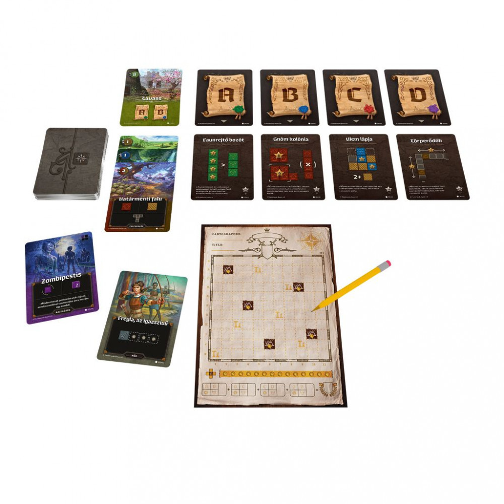 Ahogy Nalos határai egyre tovább nyúlnak, úgy nő a királyságot fenyegető veszély is. A bátor hősök folyamatosan érkeznek, de vajon elég erősek lesznek-e megküzdeni a szörnyekkel? A Kartográfusok: Hősök lehetővé teszi, hogy önálló játékként próbáld ki, vagy kombináld a meglévő Kartográfusok kiadással. Bár a térképészet nagy megtiszteltetés, az expedíciók egyre veszélyesebbek. A Gimnax királynő hűséges hősei bátran szembeszállnak a Dragul hordákkal. A játékban az egyes évszakoknak megfelelő kártyák felfedése után tetris-szerű alakzatokat kell a térképre helyezni, figyelve az évszak végi pontozás feltételeire. A szörnyek szomszéd lapjára rajzolt alakzatai komoly mínuszokhoz vezethetnek, ha üresen maradnak. A játékosok kitöltik kreativitásukat és versenyeznek a legjobb pontszámokért.