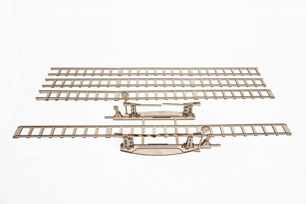 A UGEARS Vasúti Kereszteződés még több izgalmat és lehetőséget rejt magában a vasúti modellpályád kialakításához. Négy méter hosszú vasúti sín, részletesen kidolgozott átkelőhely Stop táblával és mozgatható sorompóval. A UGEARS Gőzmozdony és Vasútállomás termékeivel összetéve kész vasúthálózatot építhetünk pályaudvarral, átkelőhellyel, önjáró mechanikus mozdonnyal és egy vagonnal. Szereld össze és játssz!
