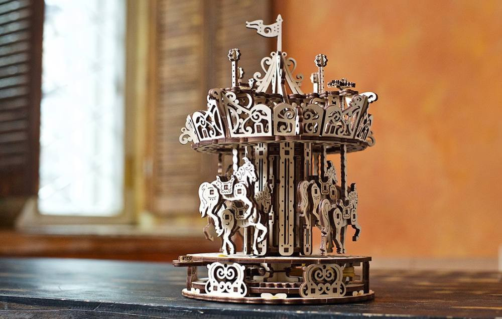 UGEARS Körhinta egy páratlan és kreatív modell az irodába vagy a lakásba. A Ugears modellek fejlesztik a logikus gondolkodást, a finommotorikát és a kézügyességet, a szem-kéz koordinációt, és a térlátást. A különleges fa anyagnak köszönhetően az érzékelés-tapintás is fejlődik a játékkal, valamint segít a szabálykövetés elsajátításában. Modell mérete: 8,3 * 8,3 * 10,2 hüvelyk (21 * 21 * 26 cm) Csomag mérete: 14,6 * 6,7 * 1,7 hüvelyk (37,8 * 17 * 4,2 cm) Alkatrészek száma: 305 Becsült összeszerelési idő: 6 óra